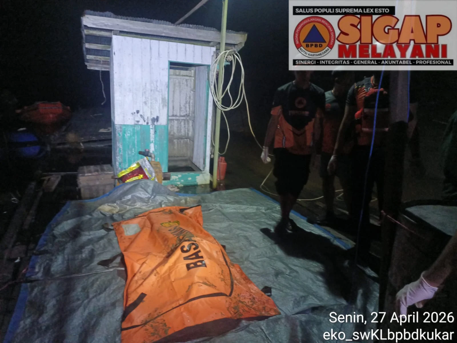 Korban akhirnya ditemukan pada Senin (27/4/2026) dini hari sekitar pukul 03.30 WITA, dalam kondisi meninggal dunia. Jasadnya ditemukan mengapung di perairan Nangka Jawa, Sungai Belayan, dengan jarak sekitar 4,6 kilometer dari lokasi kejadian awal.